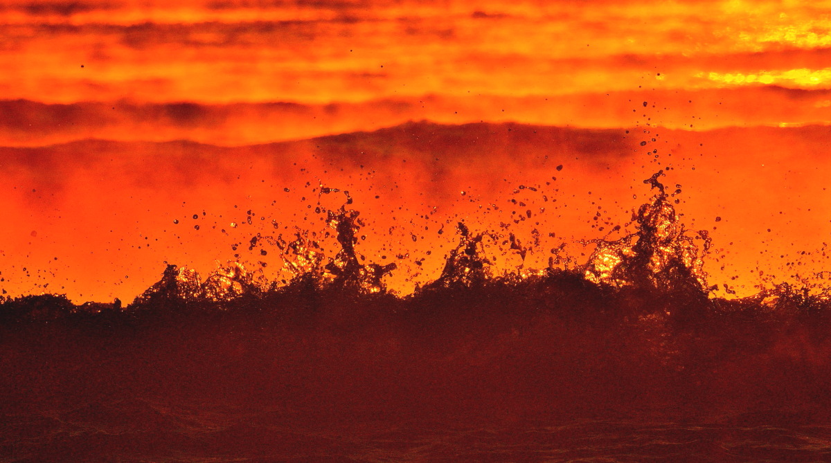 강양의 바다는 강추위와 아침의 햇살에 용암처럼 튀어 올랐다.