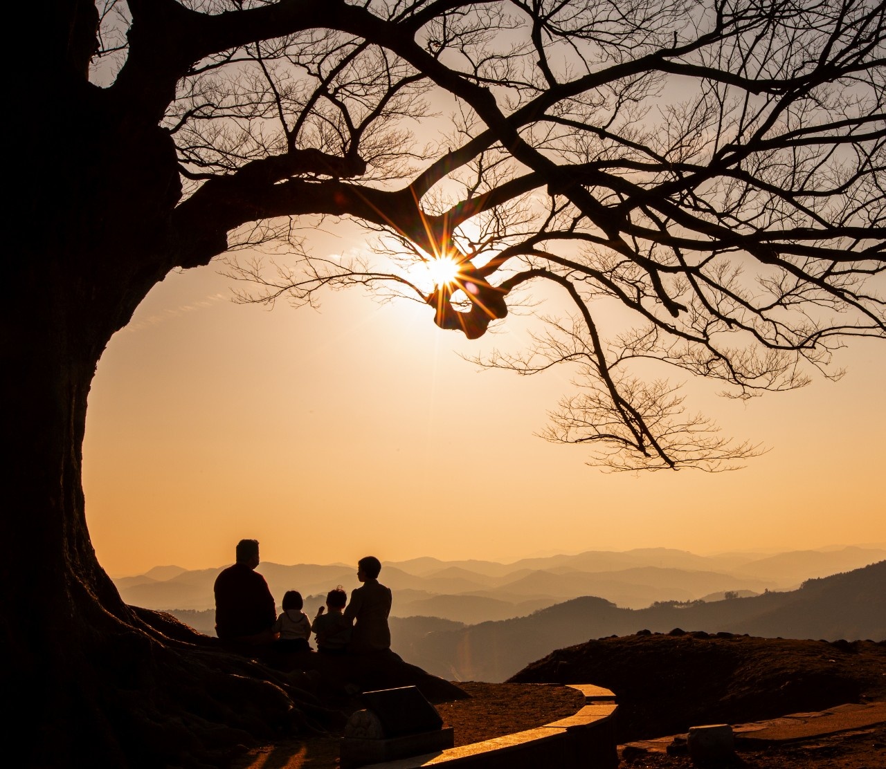 노을빛 아름다움에 가족사진도 아름답게 물들고있습니다.