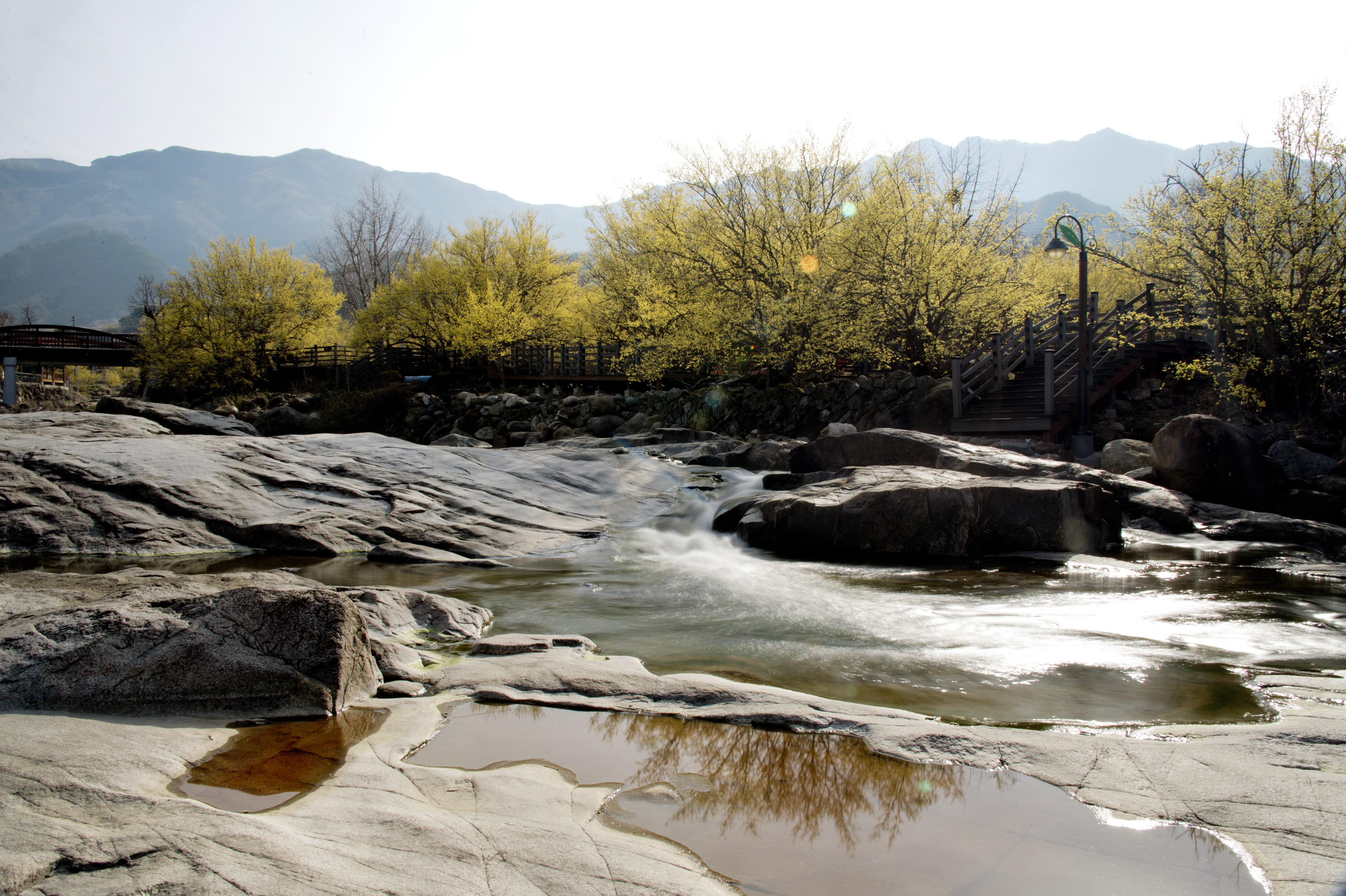 조금 늣게 가서 마음껏 하늘보고 드러누운 암석에 고인 물웅덩이에 삐꼼 고갤내민 수줍은 산수유를 담았습니다