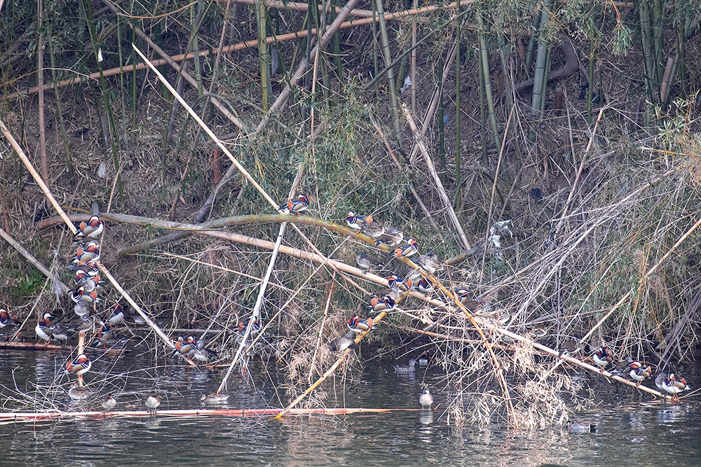 원앙 가족의 무리를 보았습니다