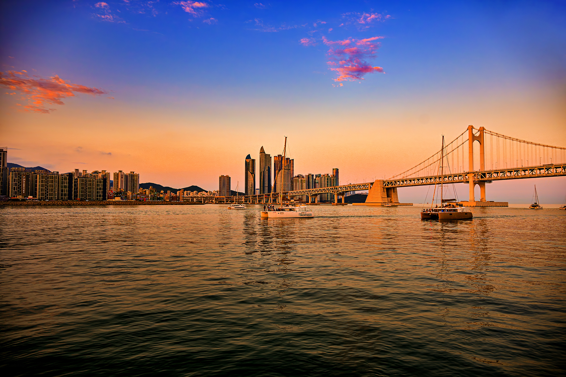 요트에서 바라본 광안대교 일몰