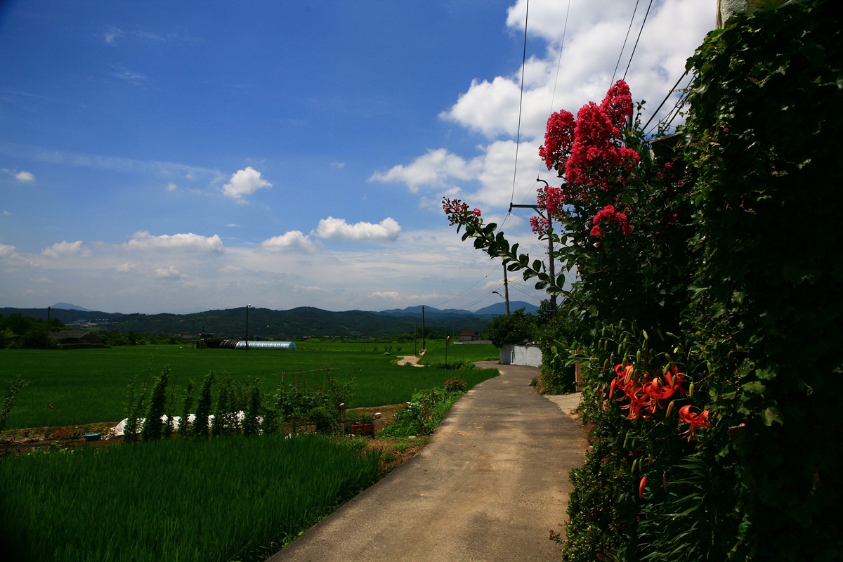 더운여름날 시골길의 풍경..