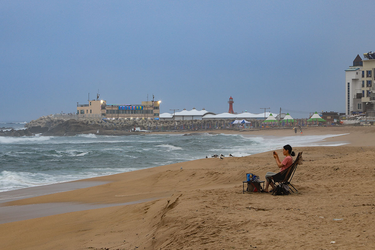 속초 봉포해변에서 바다를 느끼는 모습에~