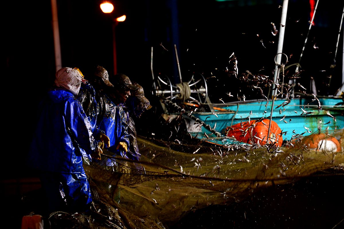 소리에 맞춰.. 마음 맞춰... 멸치 털이 작업이 한창입니다.