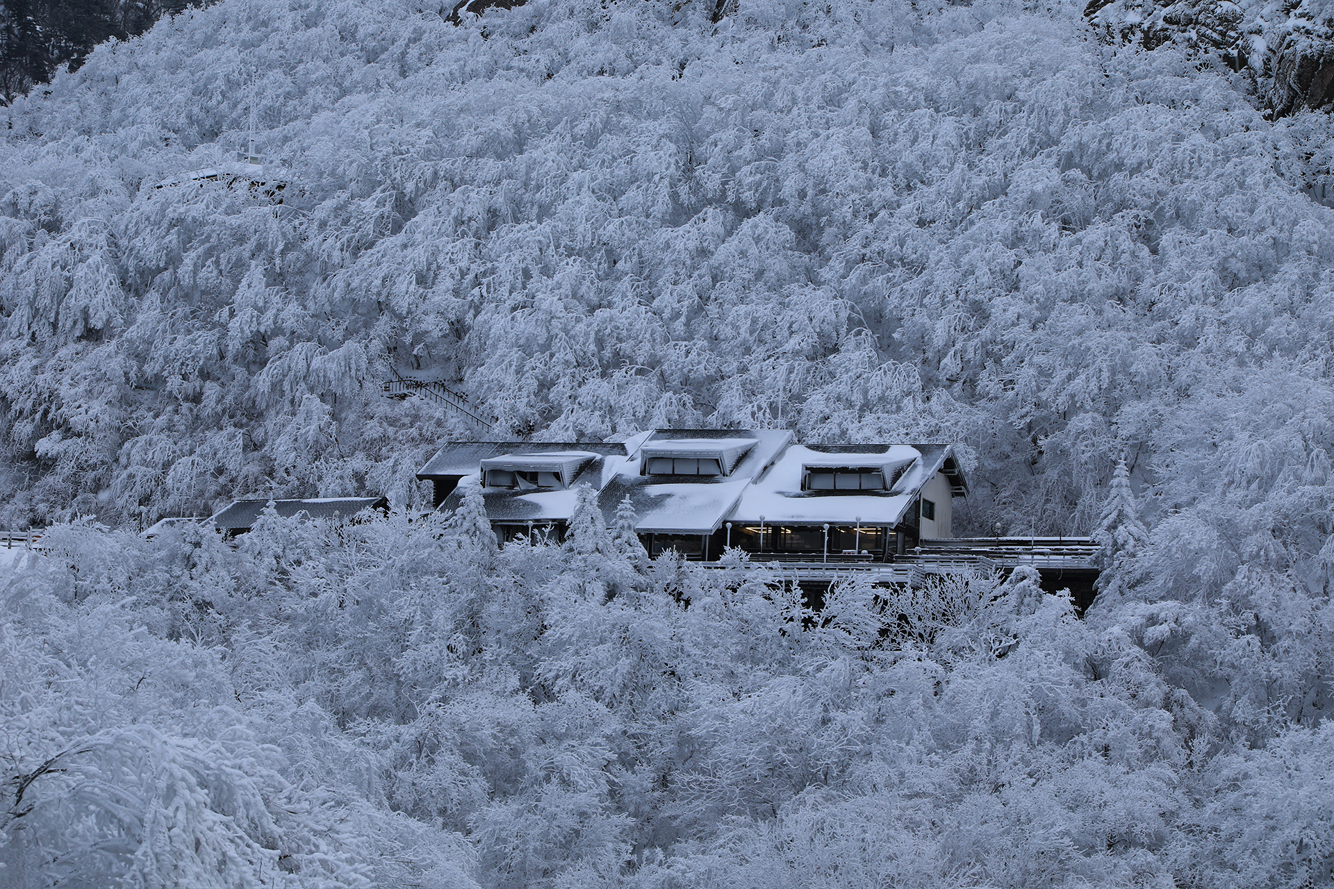 눈꽃속에 파묻힌 한계령휴게소의 설경