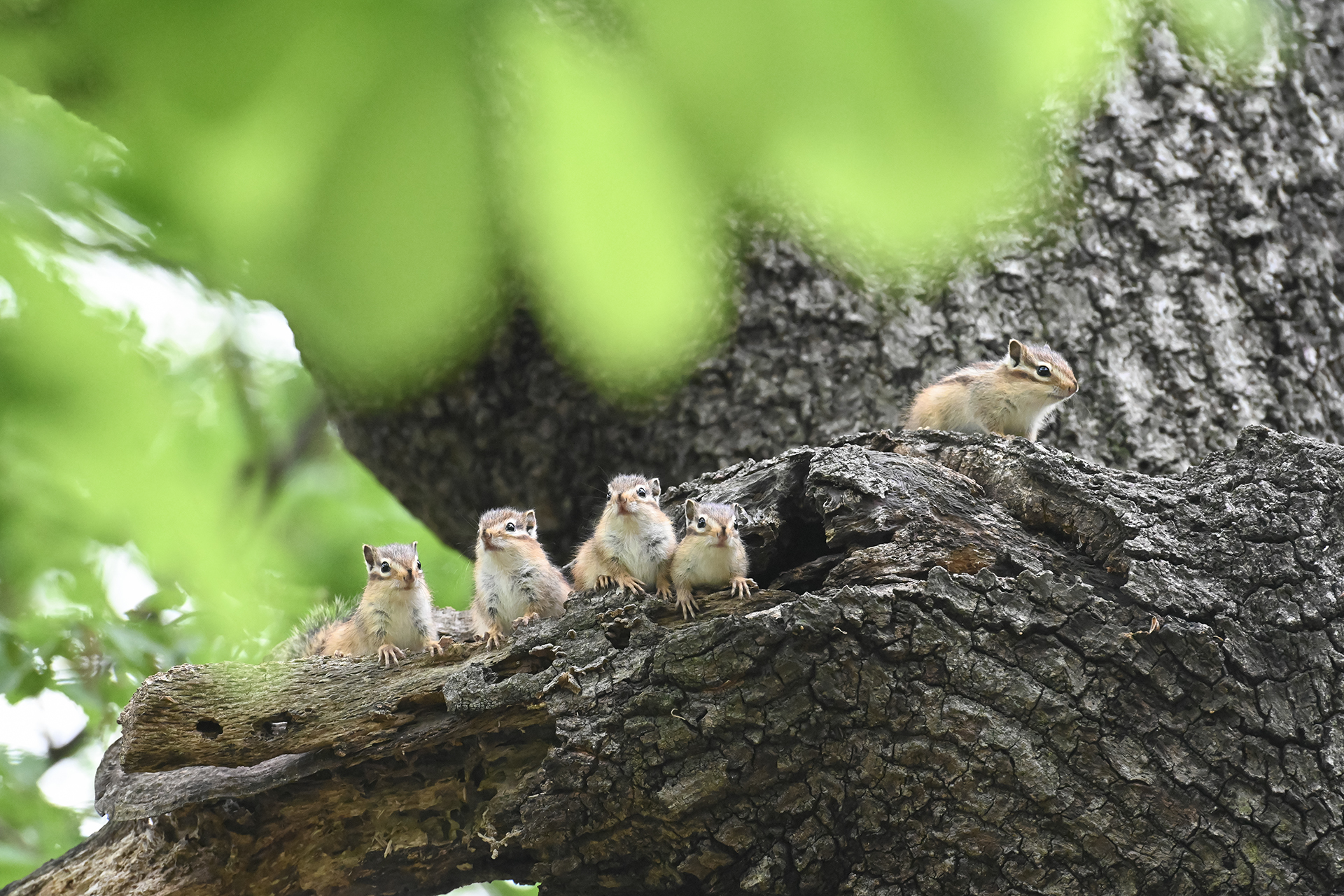 경주시 황성공원 숲속에서 귀여운 다람쥐 새끼들이 세상 구경을 하고 있다