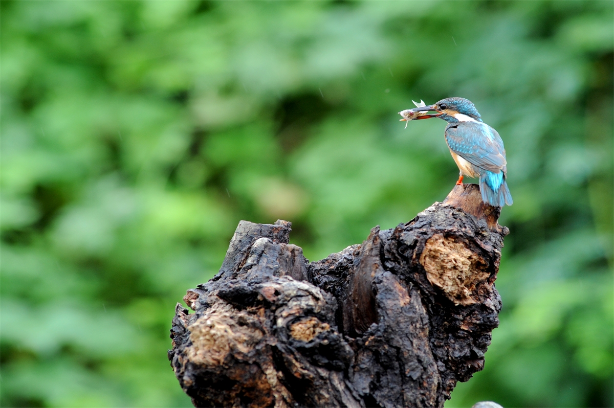 냇가에서 물고기을 잡고 있는모습