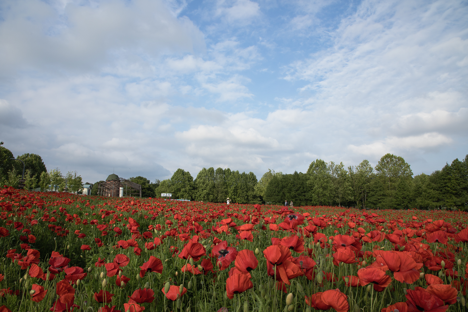 수원 탑동시민농장에 활짝핀 개양귀비 꽃밭에서
