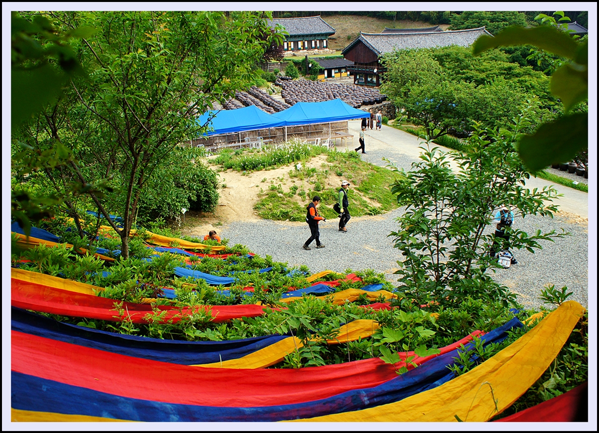 천연염색축제가 열린 서운암에는 쪽빛 천연색으로 물들이다.