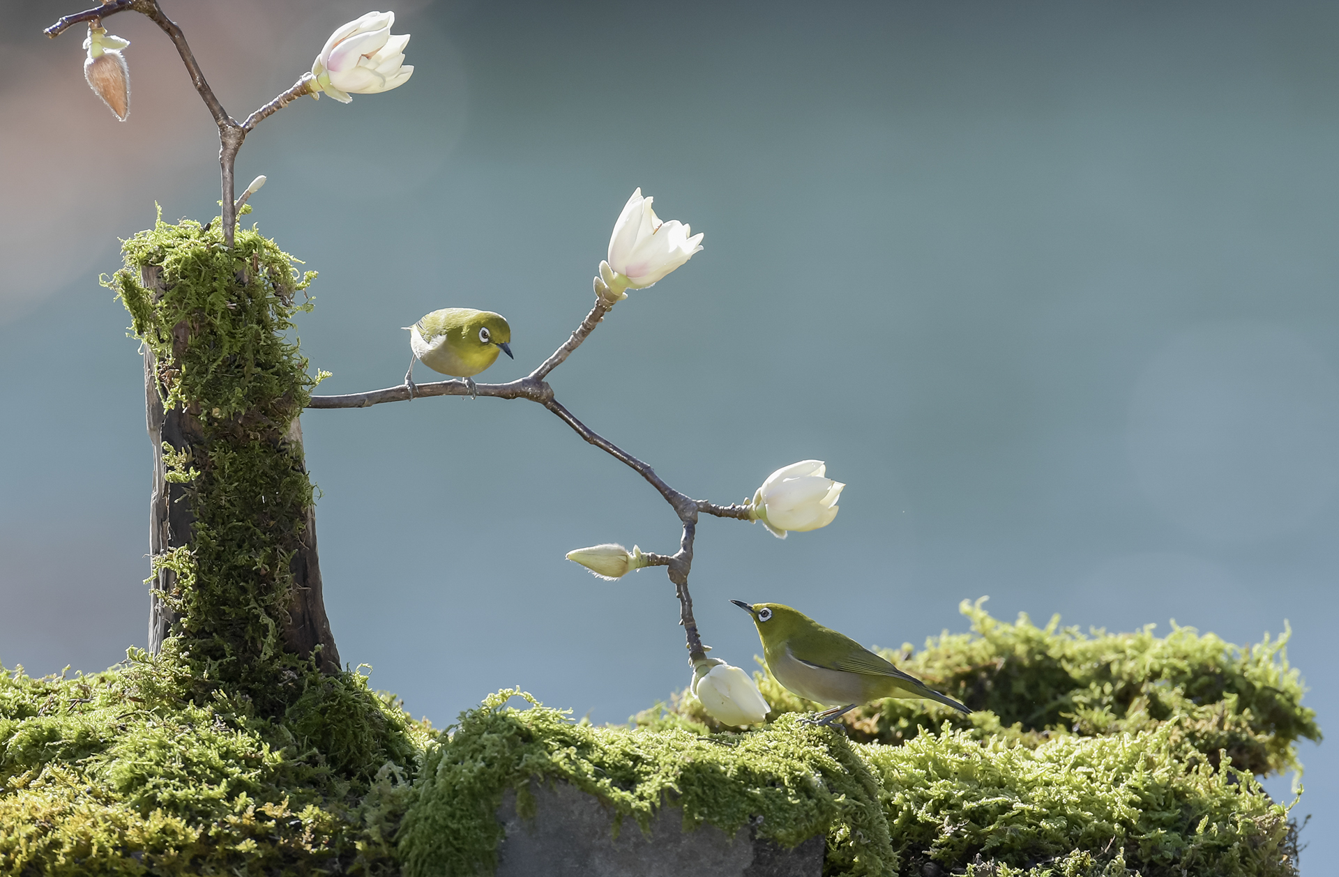 목련꽃과 동박새의 만남을 어떻까요 ?