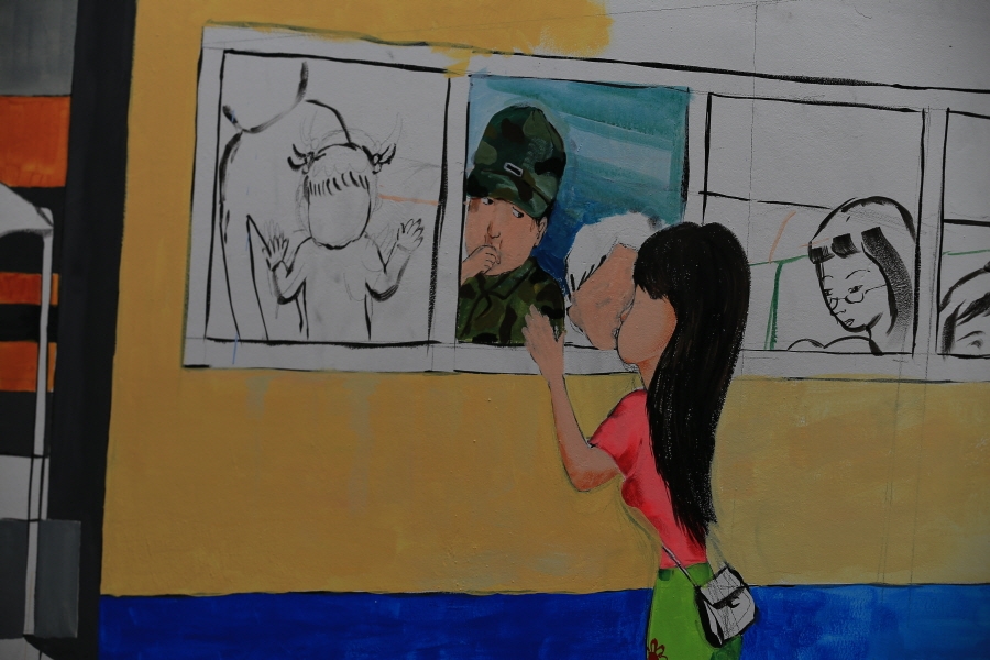 얼마전 읍천항에서 화가들이 벽화를 그리고 있는 미완성 작품입니다.