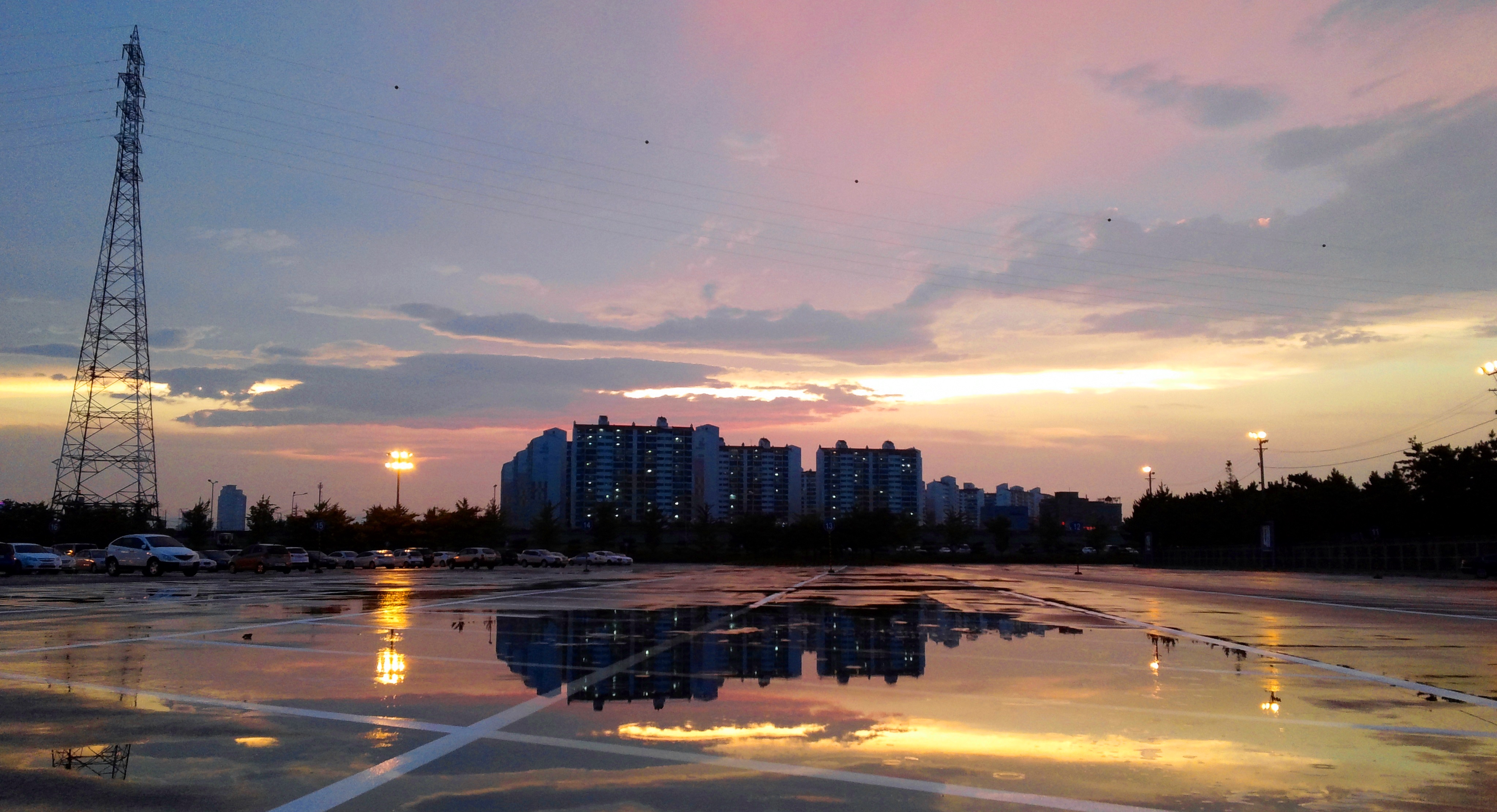 퇴근길이 상쾌한 저녁노을의 명촌뜰