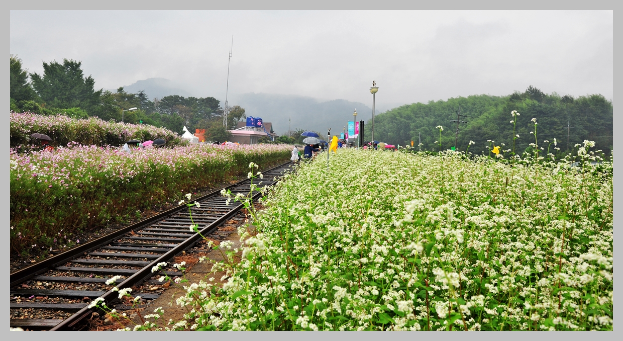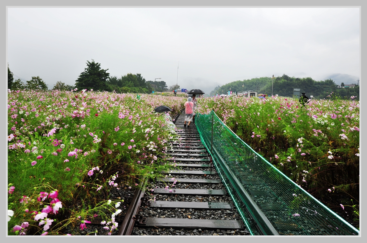 가을비가 내리는 북천역에 가을꽃 향기를 가득 싣고