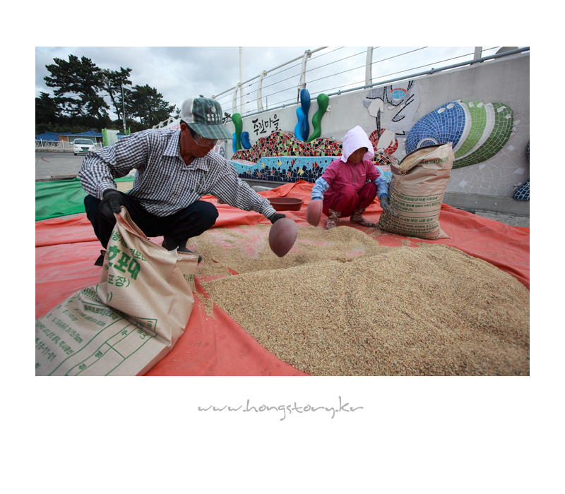 탈곡후 나락을 건조하시는 노부부의 모습을 담아 보았습니다^^