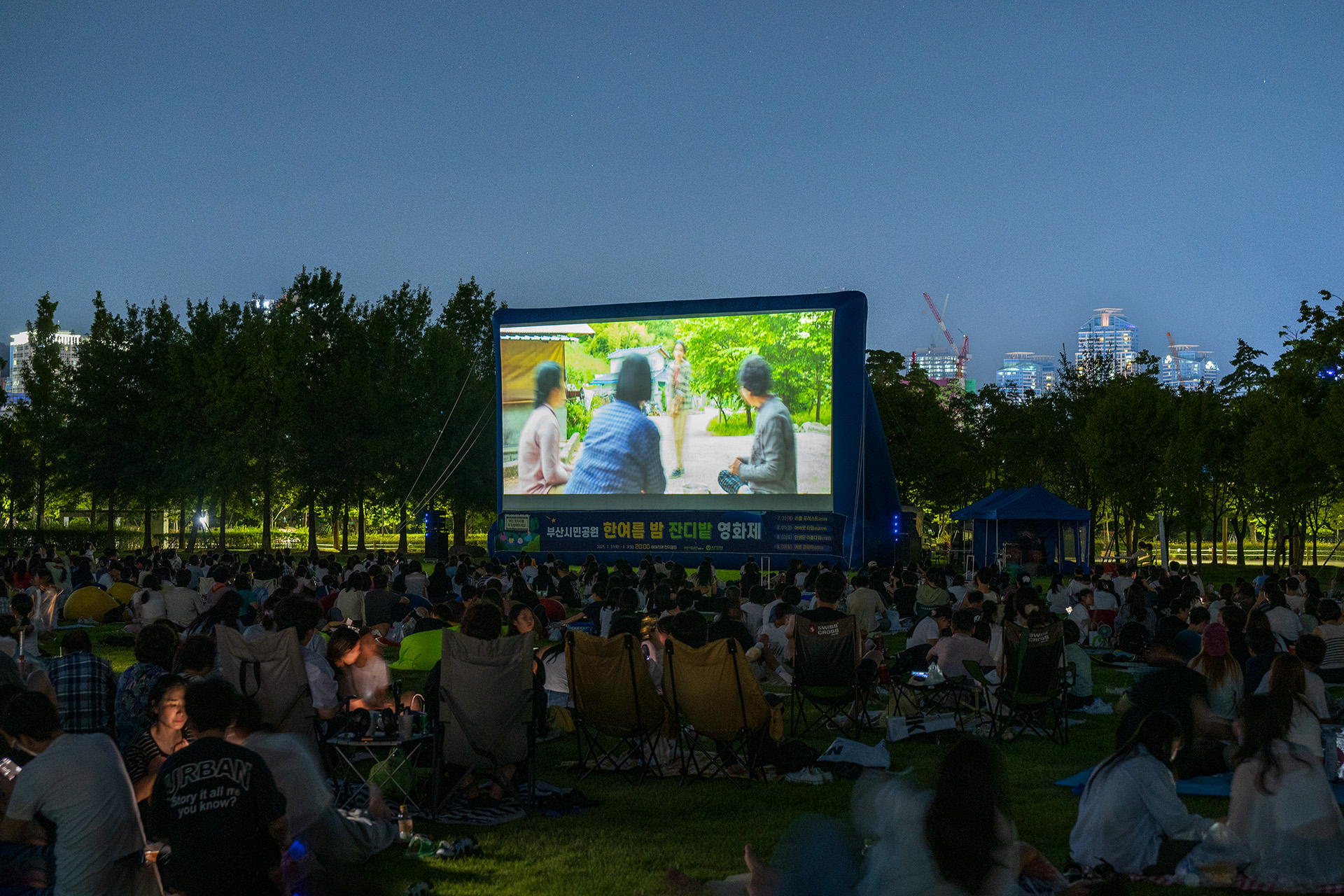 **시민공원 잔디밭의 모여 영화 관람(리틀포레스트)관람