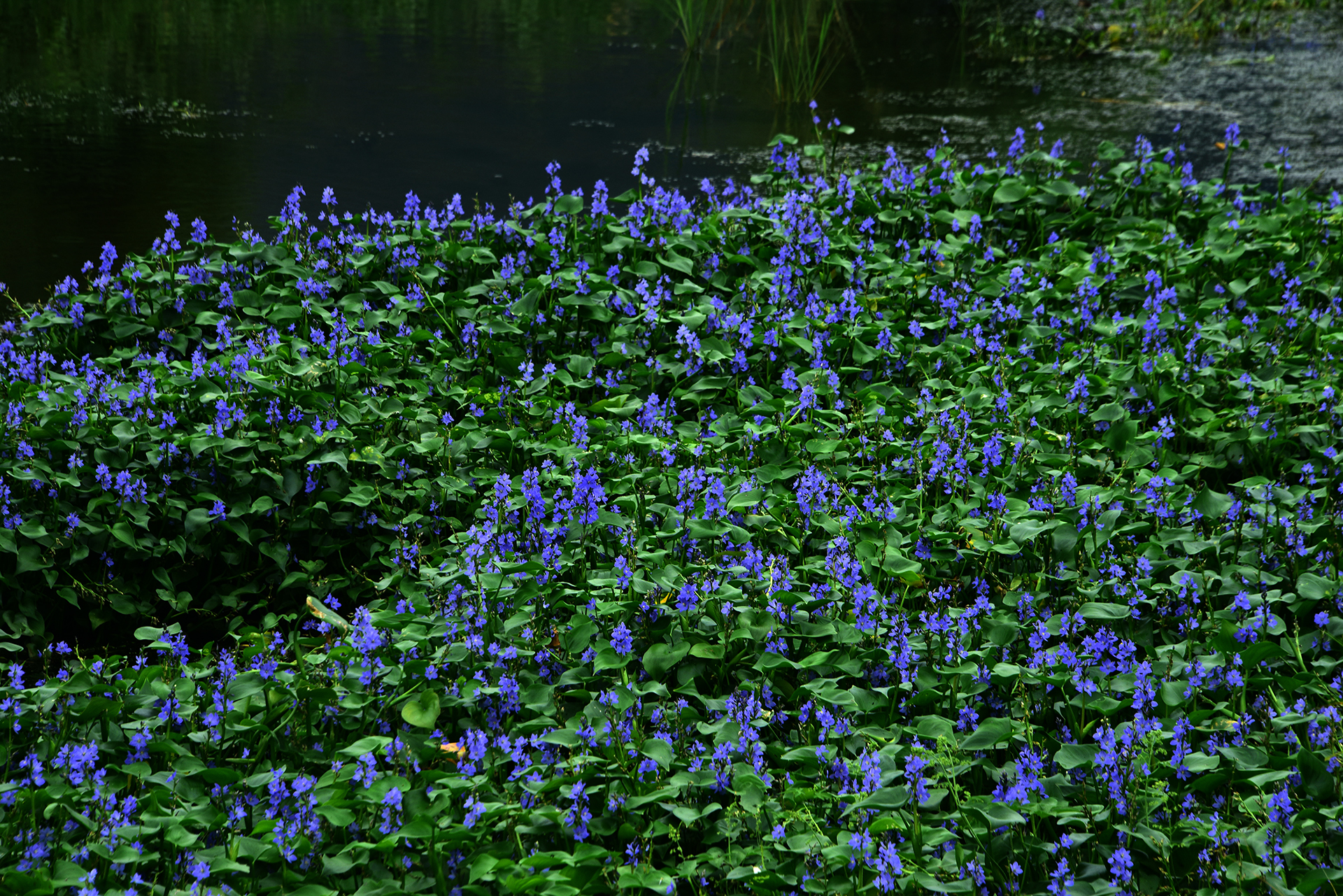 수로에 물옥잠 군락이 엄청납니다.