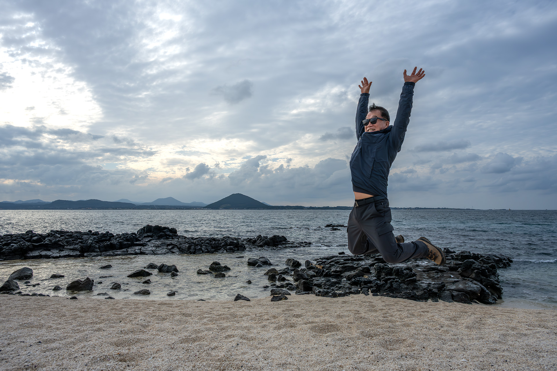 ** 제주 바다 위에서 펄쩍 뛰고 있습니다.