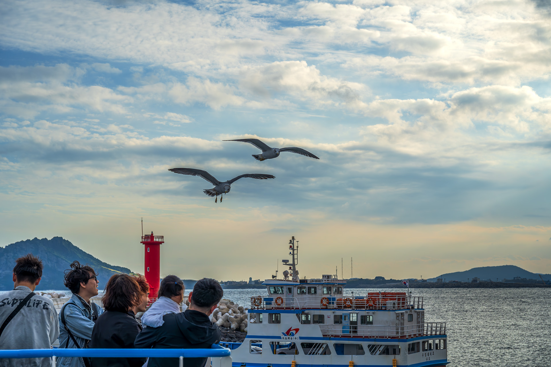 **제주 우도 가는데 갈매기가 줄줄 떠러 옵니다.