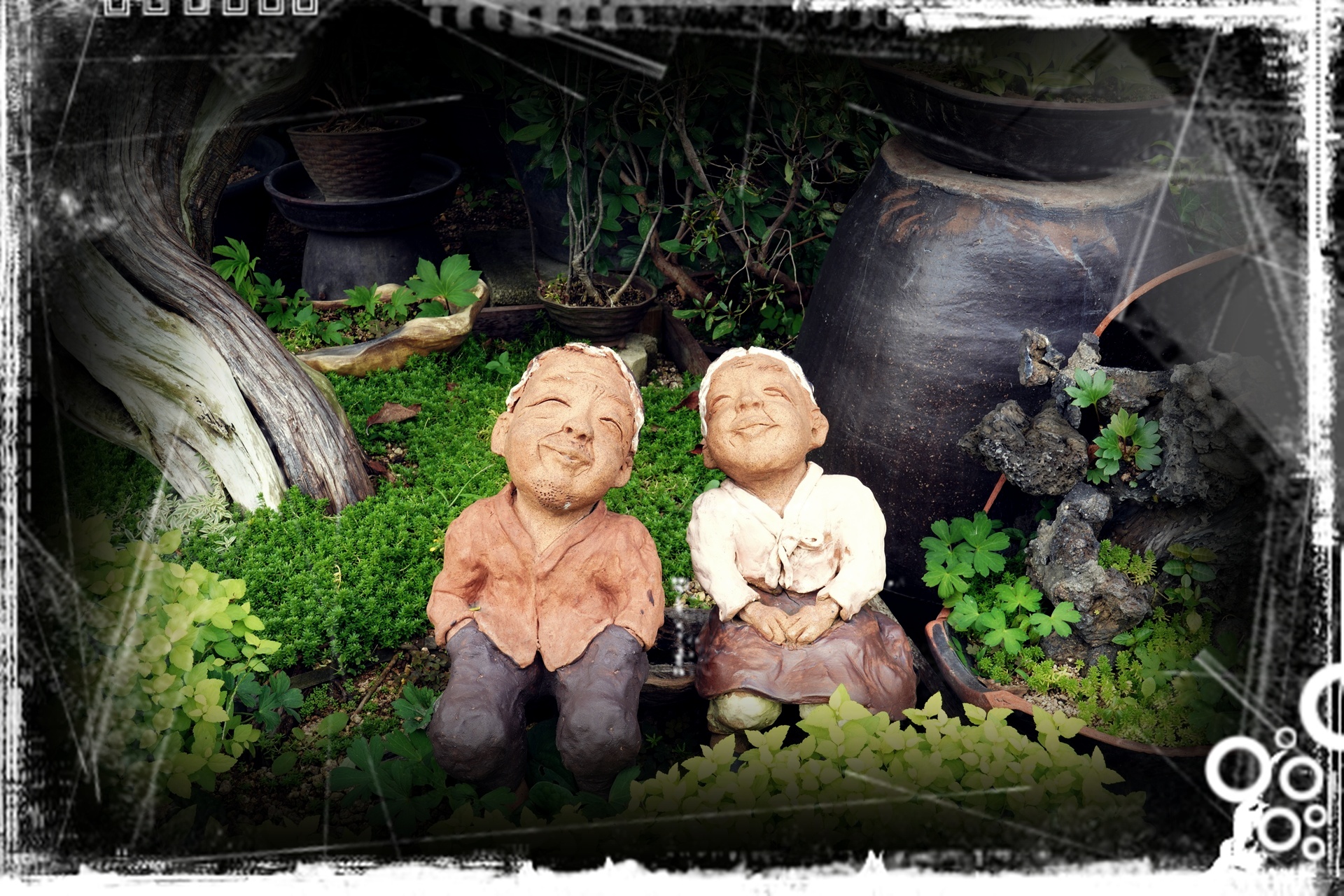 볕 좋은 뜰에 나란히 앉아
