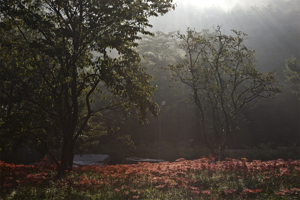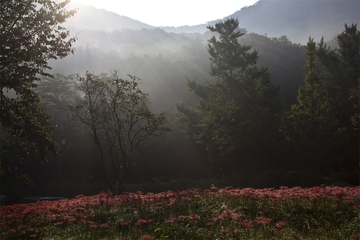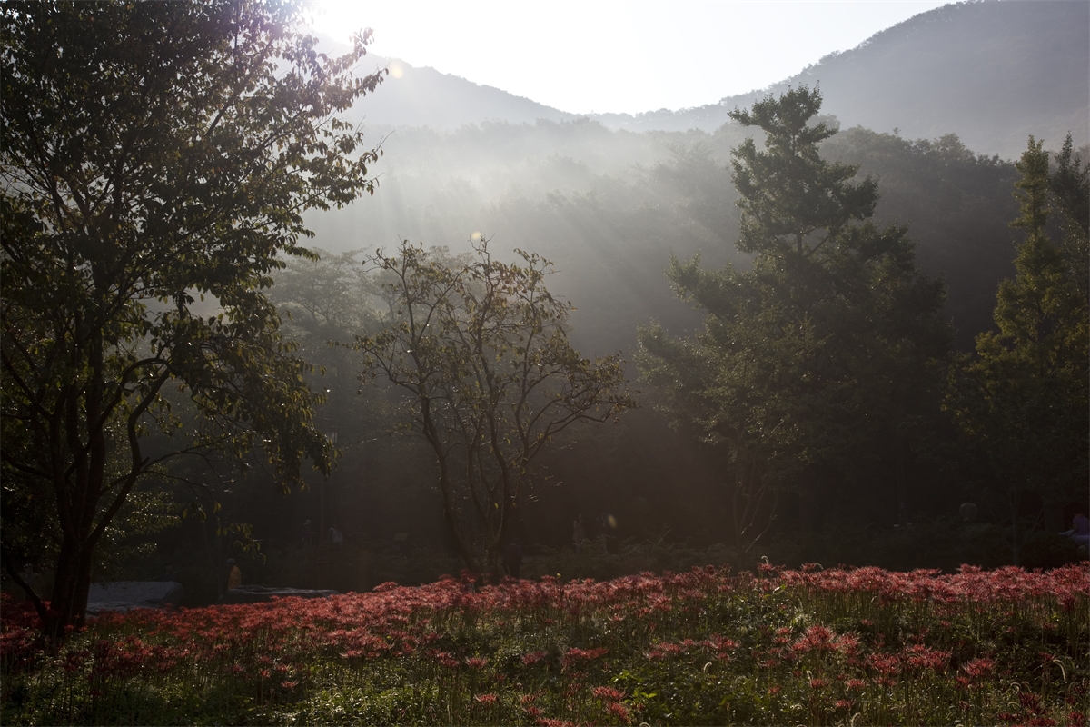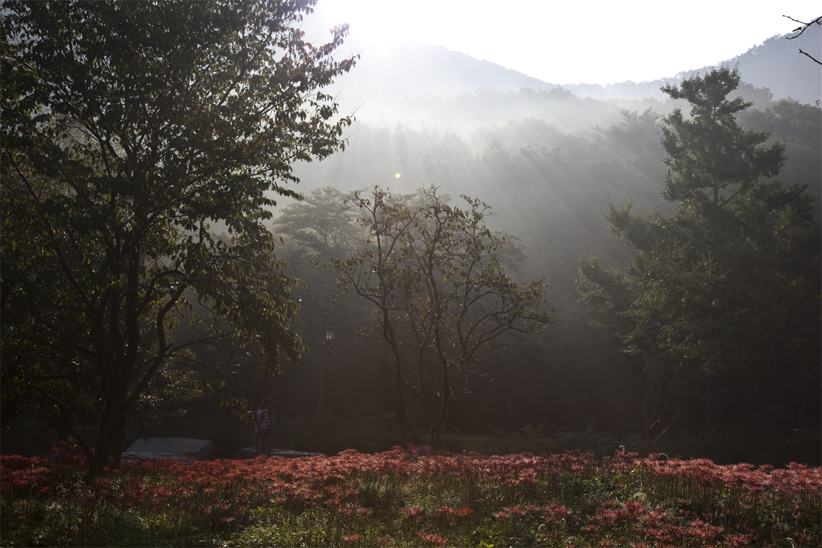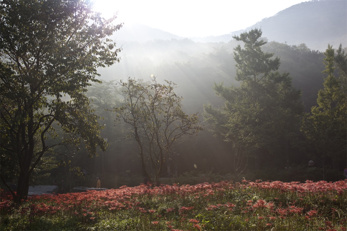 선운사의 꽃무릇이 축복의 빛내림을 받고 있습니다.
