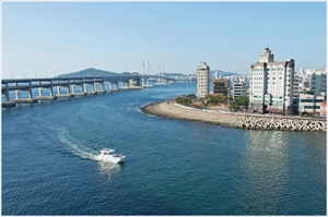 최근에 건축된 벡스코 제2전시장 계단을 몸이 불편한 남편을 부축해서 내려오는 노부부