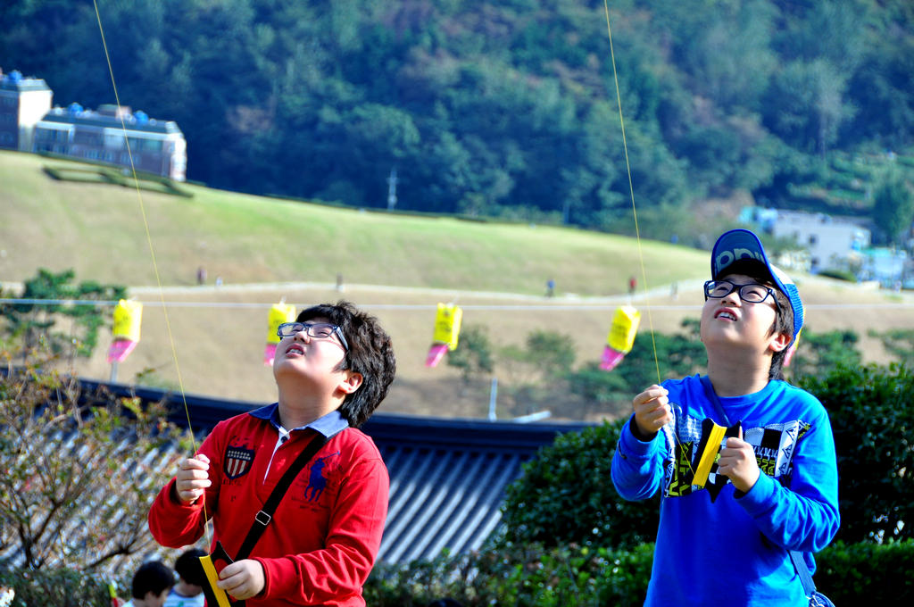 연날리는 두 친구.