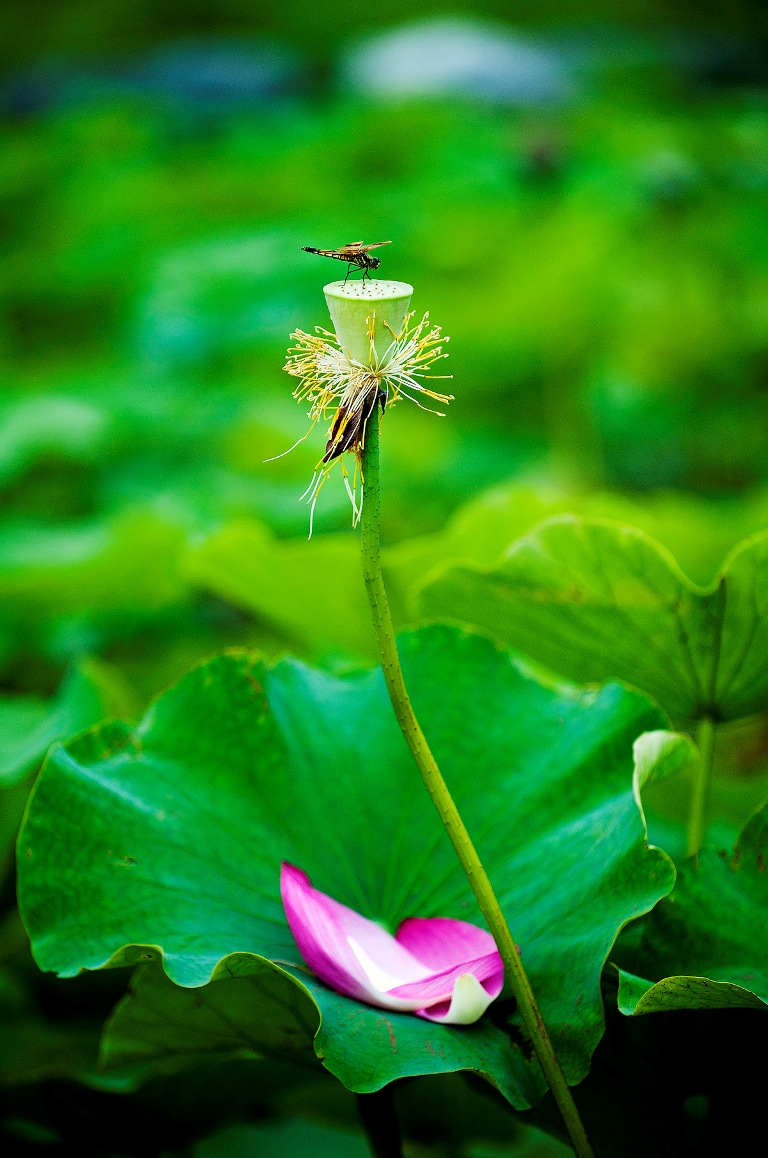 연곷의 마지막 모습에 잠자리가 앉으니 더욱 아름다워 보인다