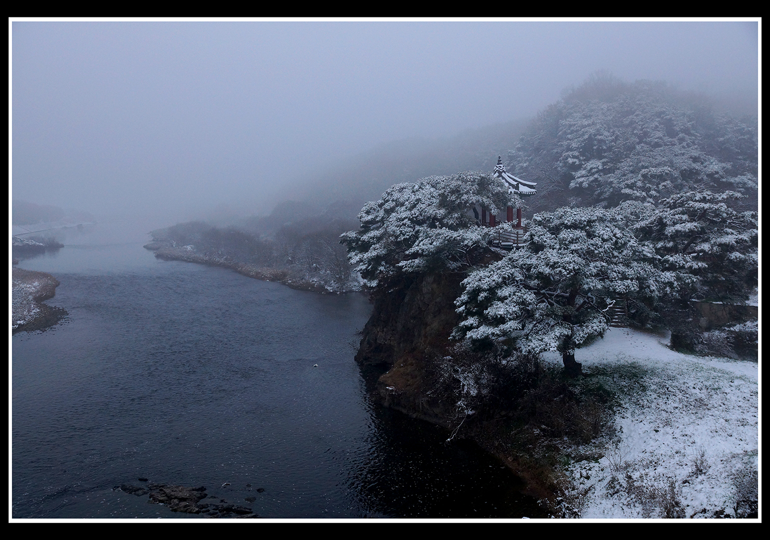 짙은 안개가 늦도록 걷히지 않습니다.