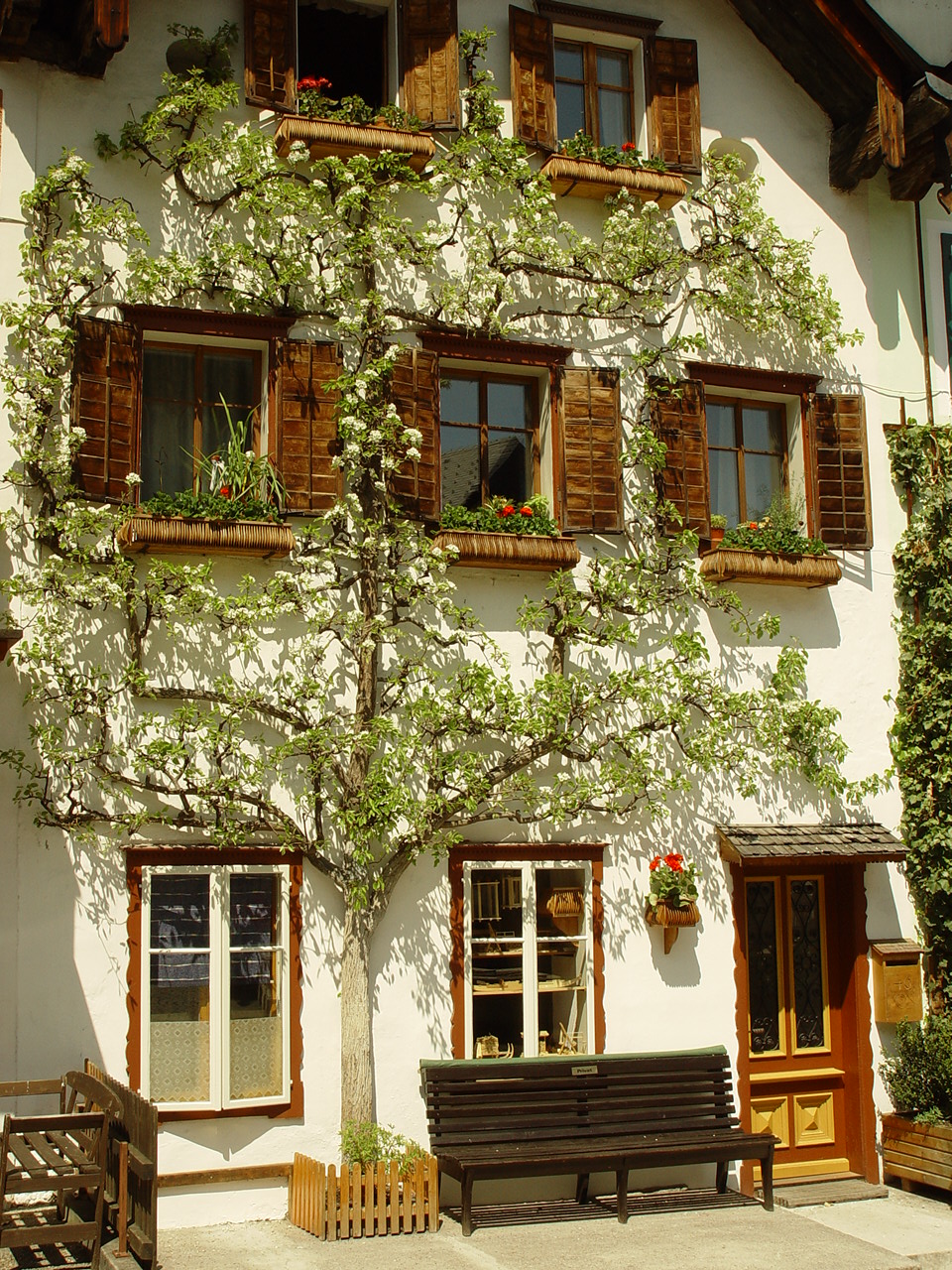 사과나무를 벽에 붙혀 심어 꽃을 피운 것이 인상 깊었습니다.