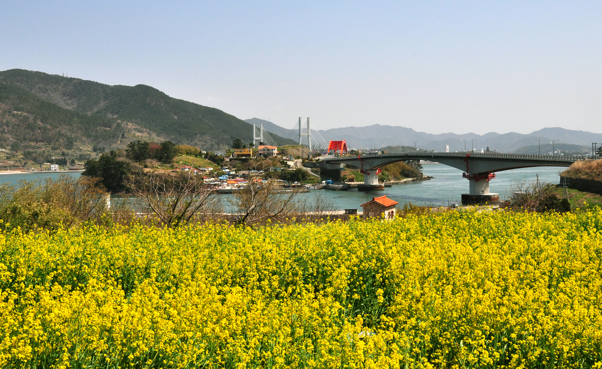 유채꽃과 대교와의 환상적 어울림