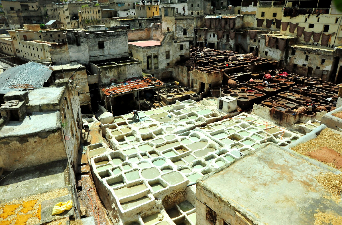 모로코 페스의 천연가죽 염색공장