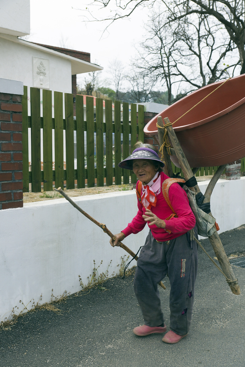 촌장이 경운기에 물을 싣고가서 소독용 고압 호스로 물을 올려 주마고 했더니 물을 담을 고무다라를 지게에 지고 나오네유. ㅎ