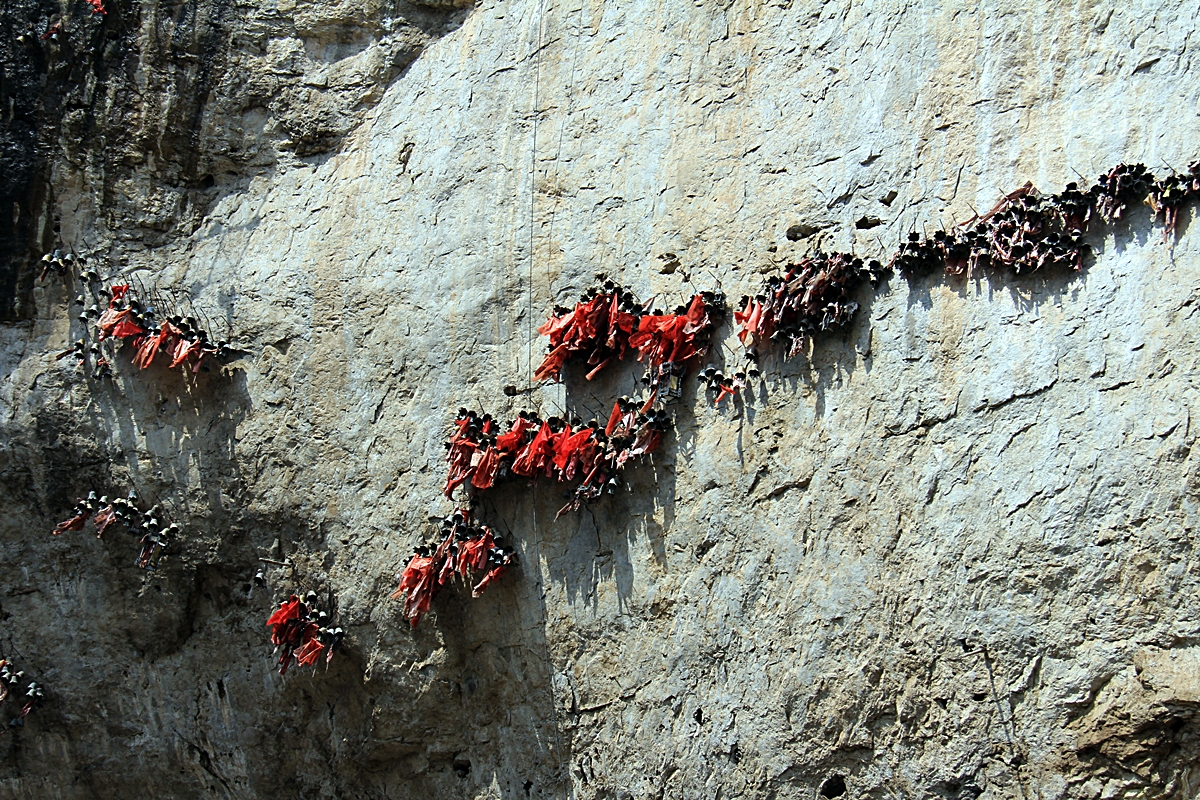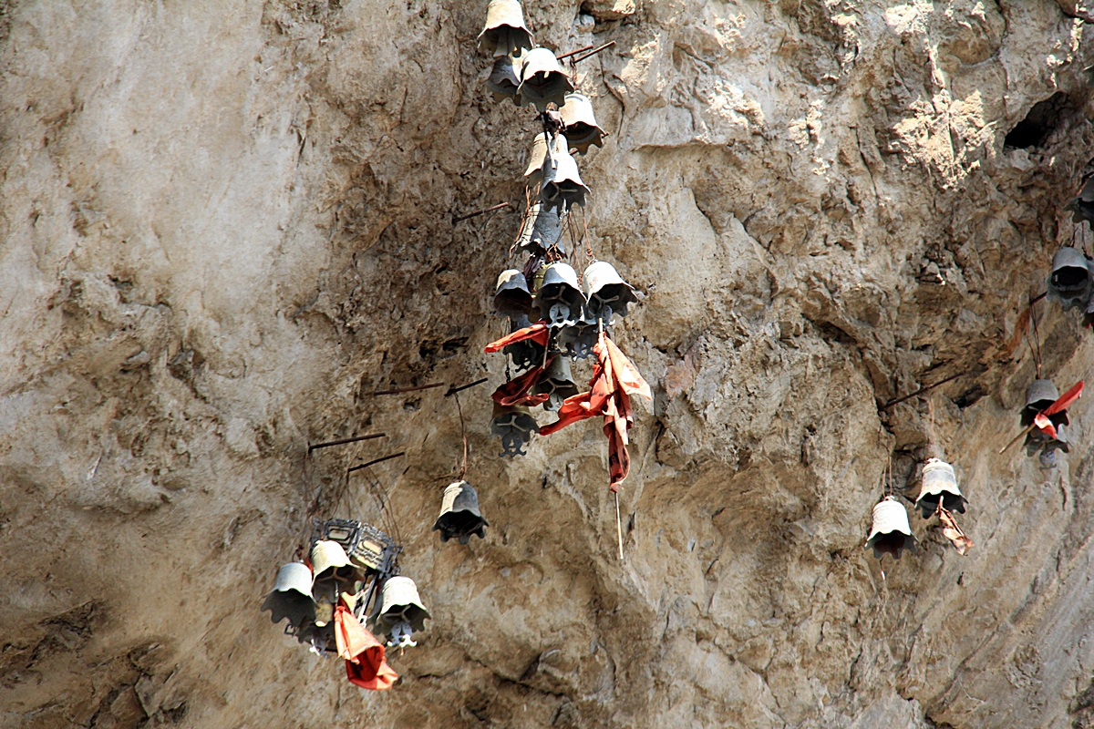 절벽에 소원을 비는 종(방울)을 달아 놓은 모습이 장관이다.
