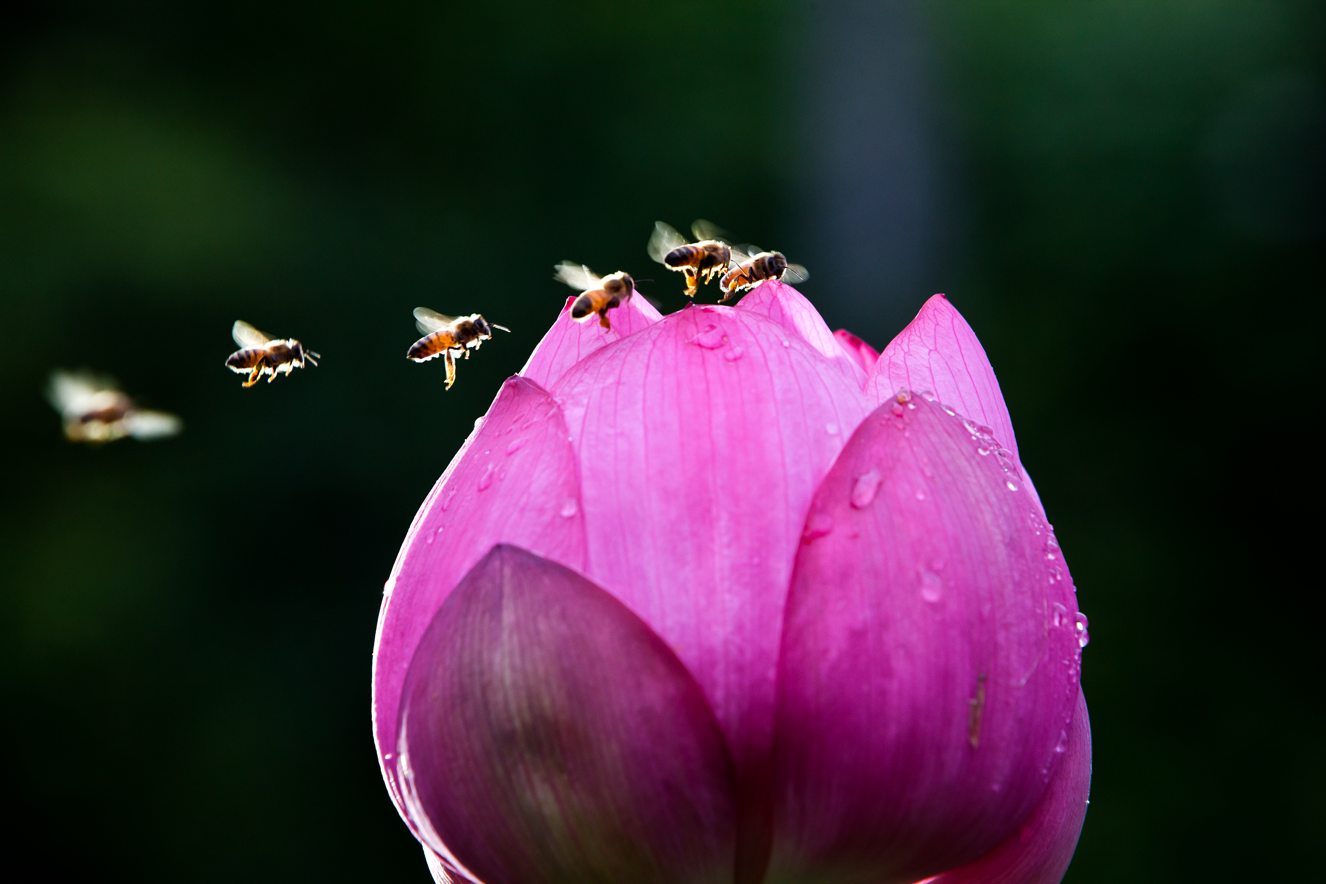 연꽃의 꿀을 따러 일렬로 섰어요