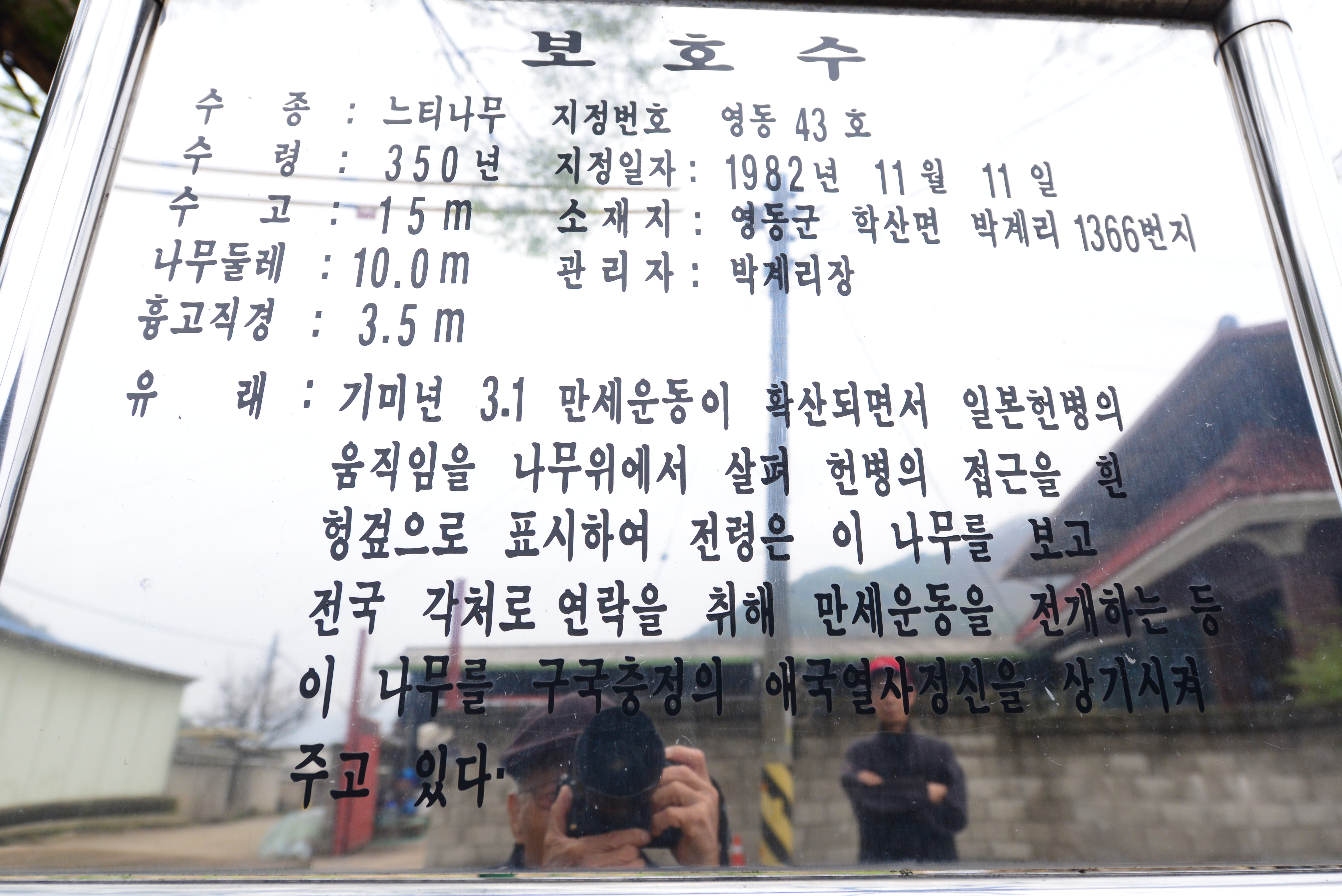 느티나무 영동-58호 위치 : 상촌면 임산리 365-2 번지 수령 : 00 년 (주민 말은 몇년전에는 600 년이라 전해졌다고함)