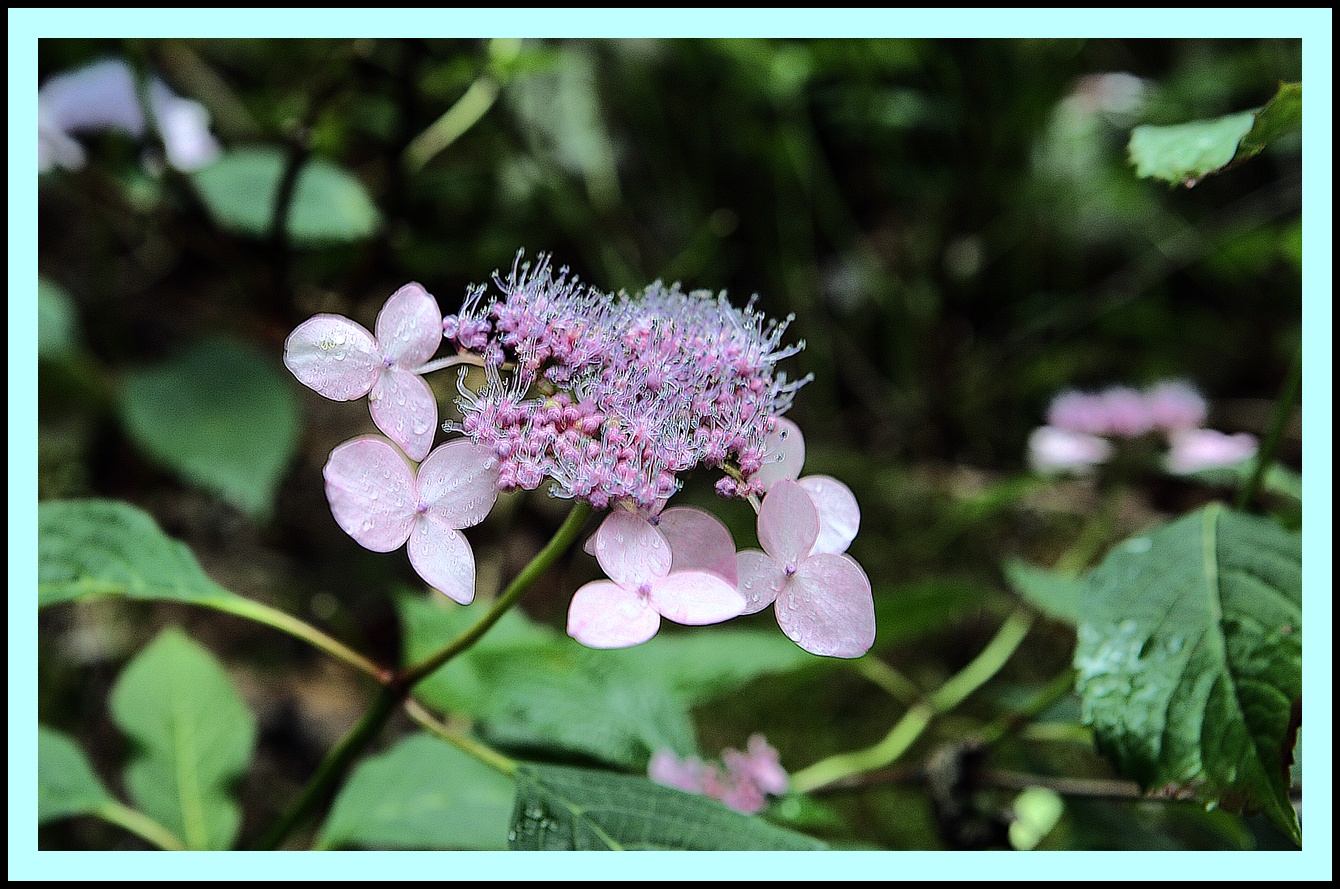 꽃은 무성화, 7~8월 개화, 희고 붉은색이 도는 하늘색, 지름 2~3cm