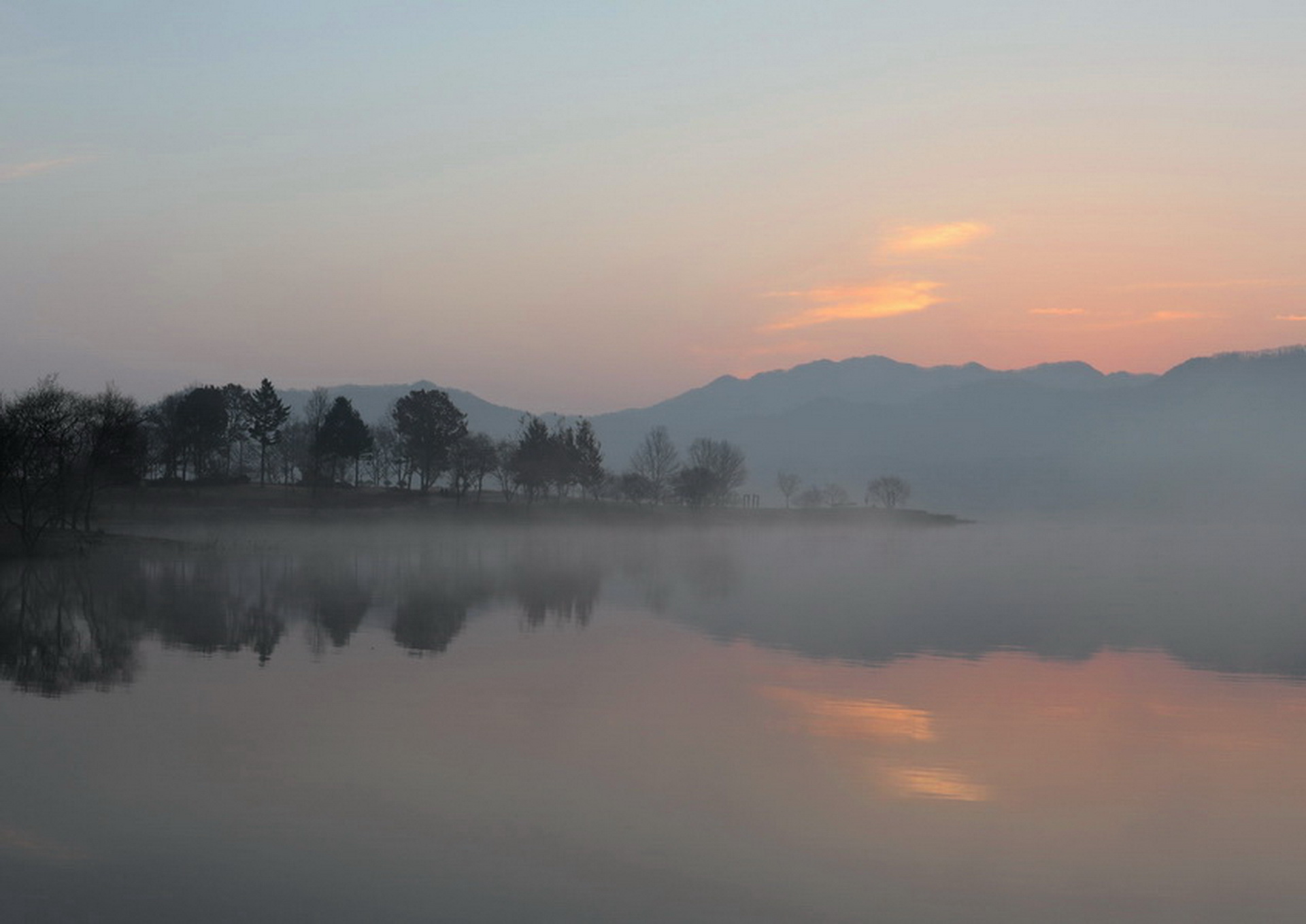 대청호반의 새벽 아침 풍경입니다