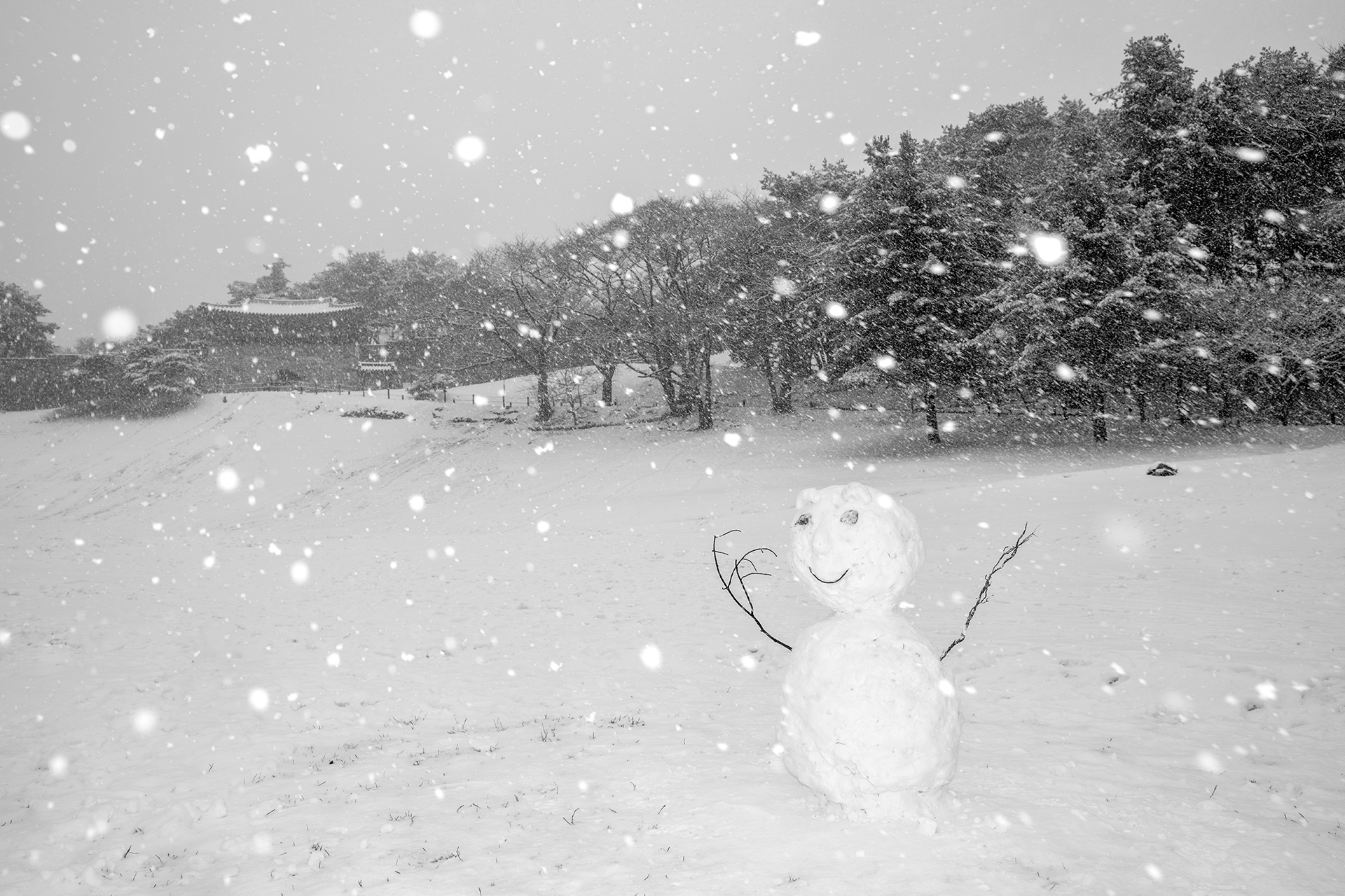 눈내리던날 누군가 만들어 놓은 눈사람..
