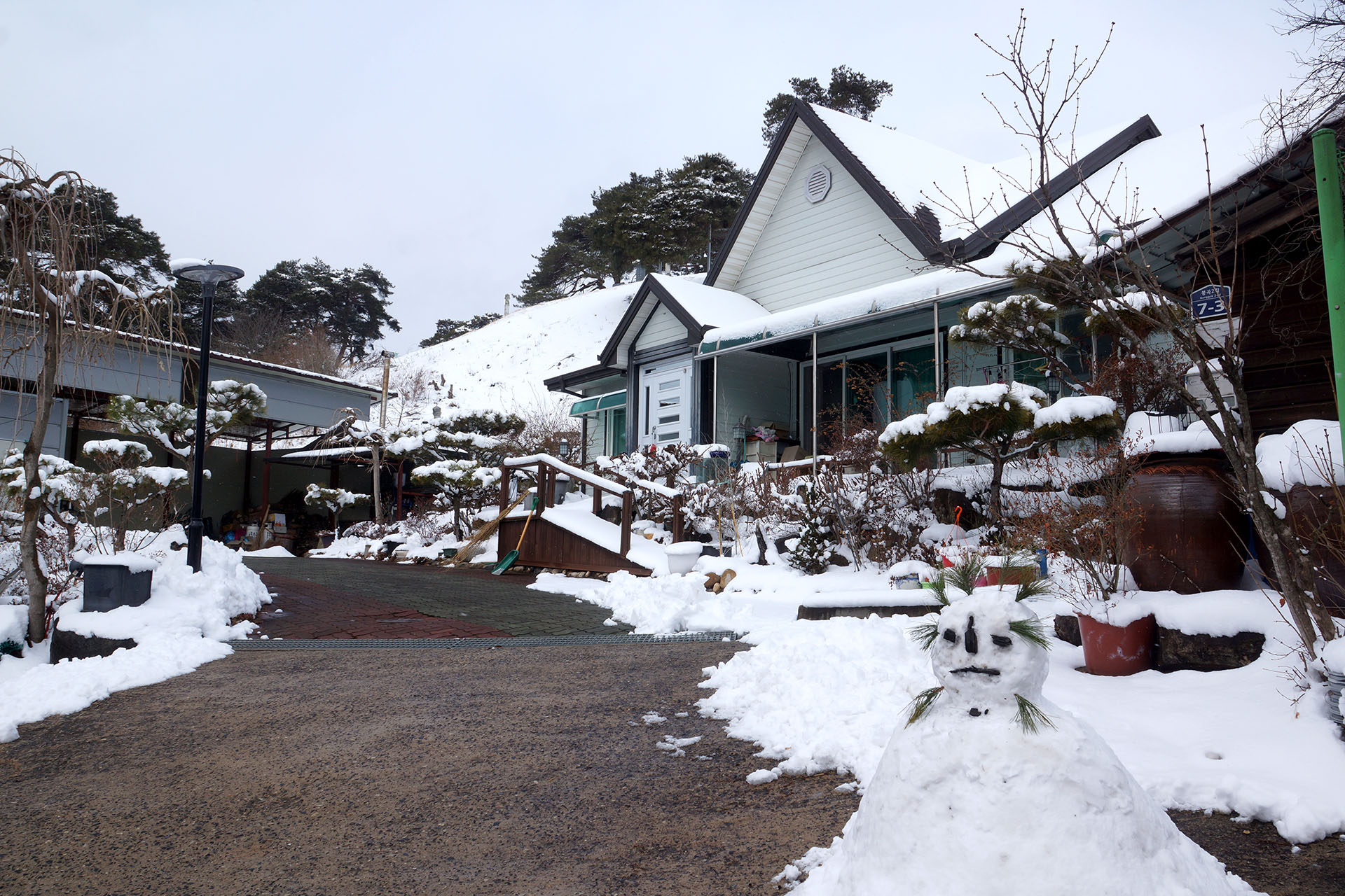 눈사람을 만들어봤어유.