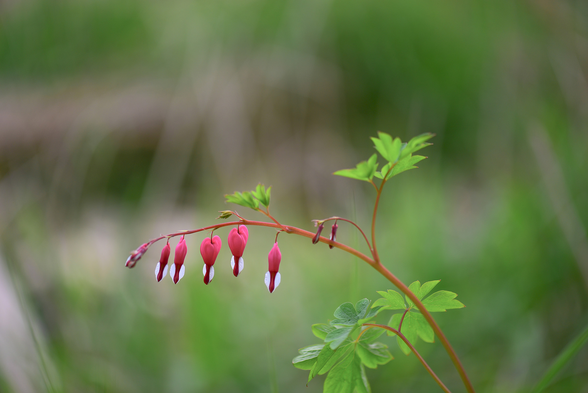 으름덩굴 아래 한 송이 피어있는 금낭화가 있어 담아보았습니다~