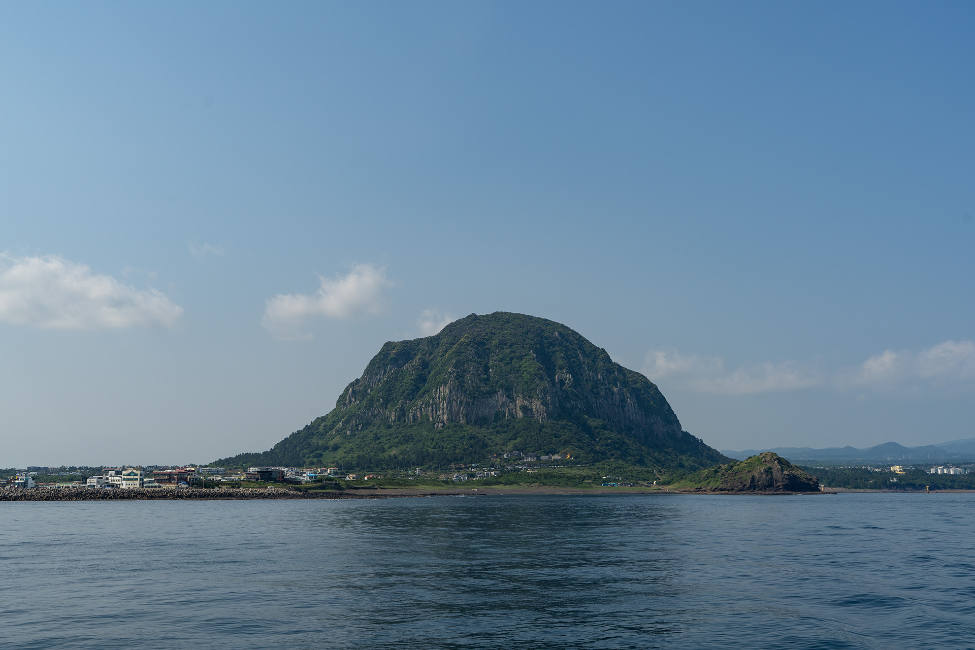 유람선에서 바라본 산방산과 용머리해안입니다.