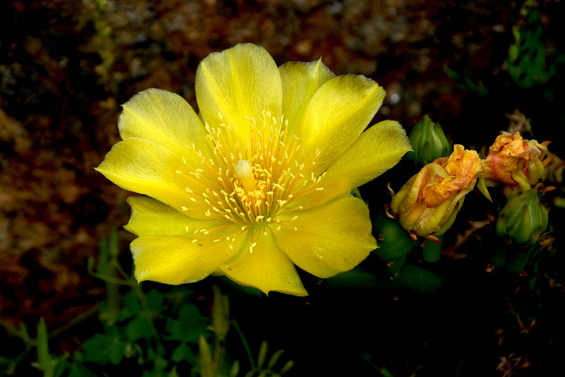 백년초가 많이 자라 꽃을 피웠어유.