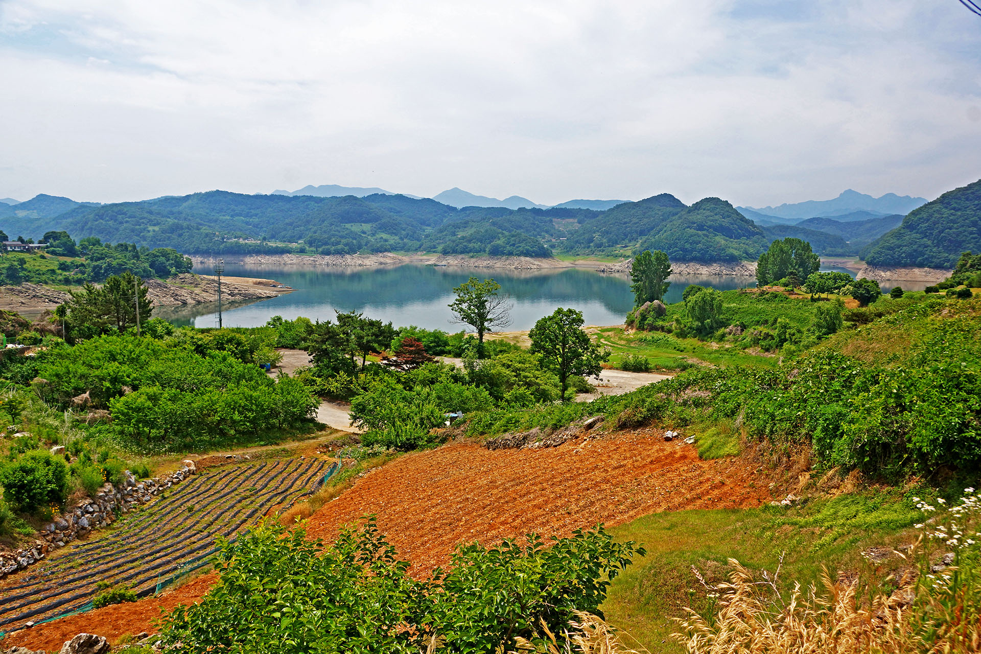 봄이 오면 600m  길과 호반이 개복숭아꽃으로 만발하는 도화리 마을입니다.