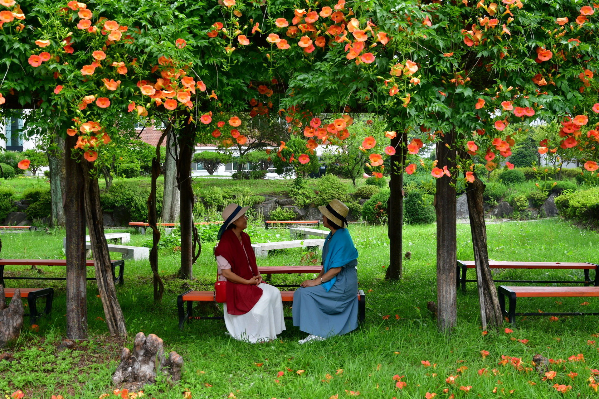 옥천 도립 대학교에서 능수화가 아름답게 핀곳에서