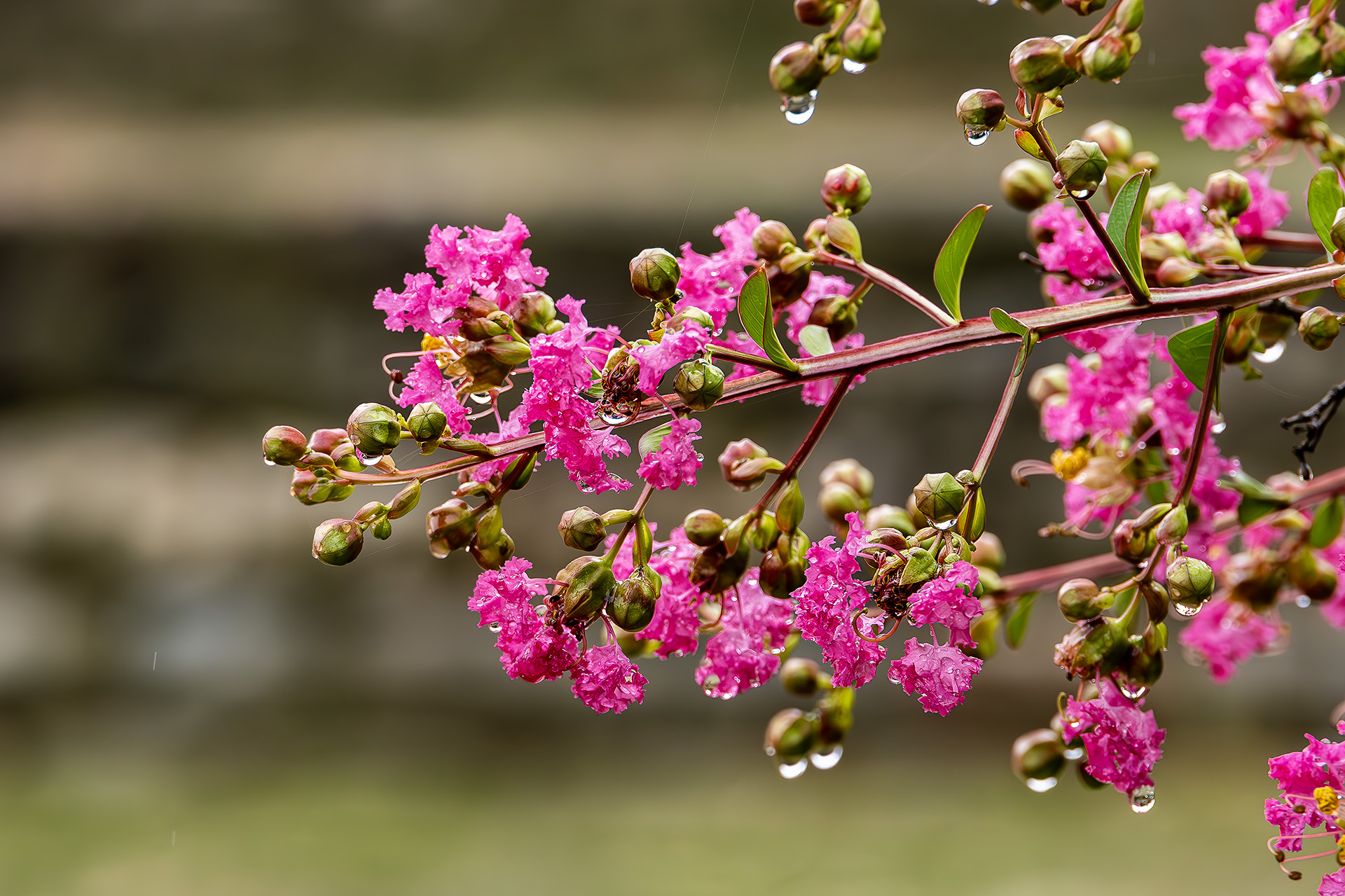 비를 머금고 피어있는 배롱꽃
