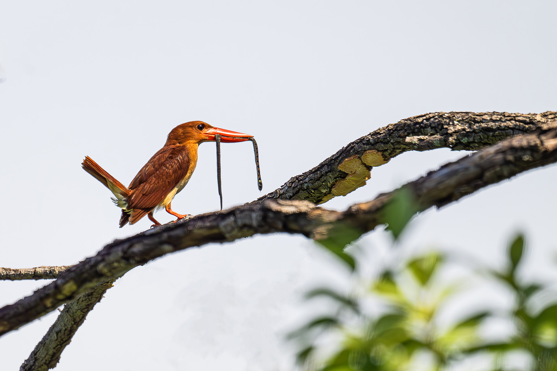 뱀을 잡은 호반새 둥지주변서 경계를..