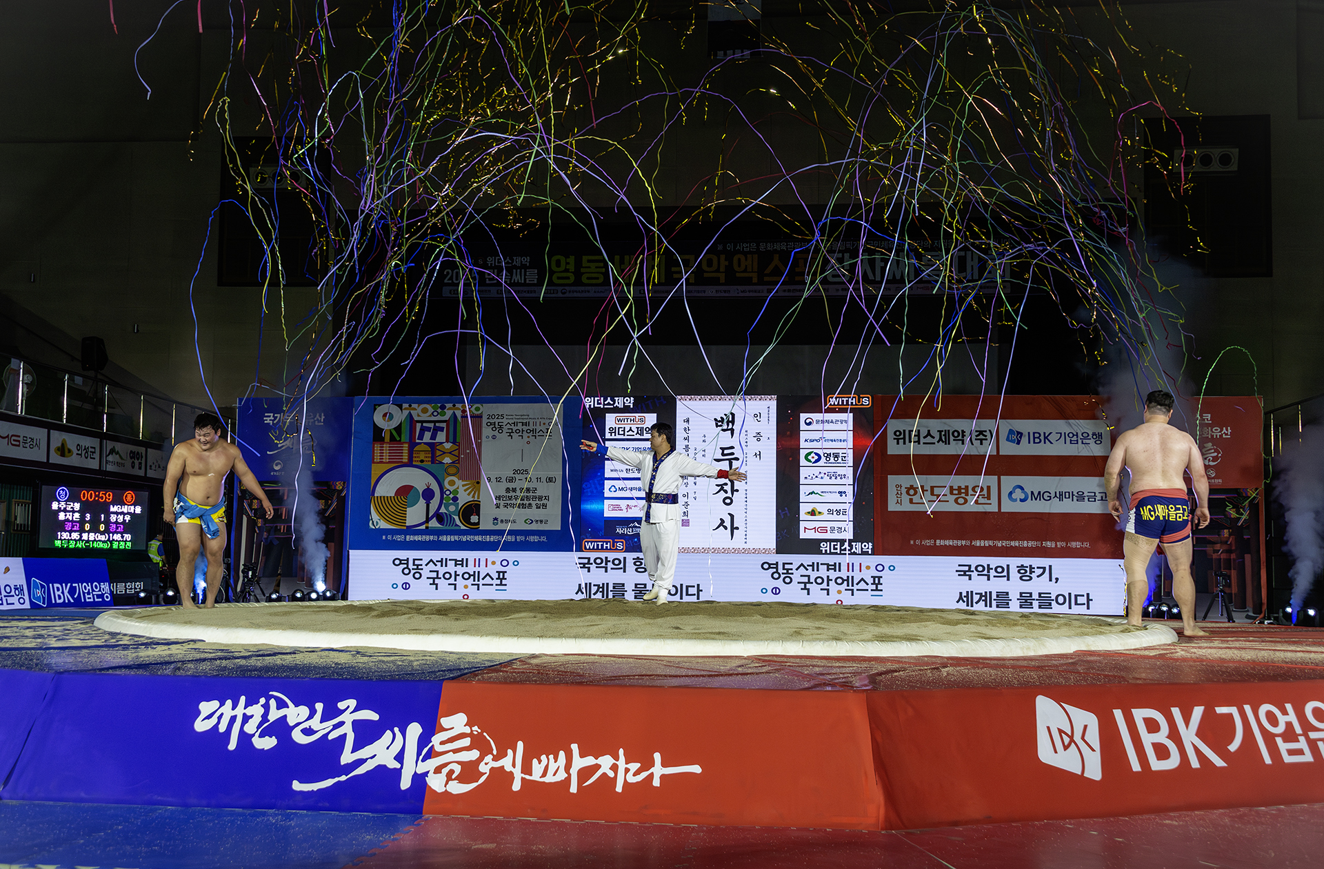 백두장사 승자와 패자의 모습 왠지 관중석에서 아빠를 응원하던 소리를 들었기에 패자의 뒷모습이 안쓰러운 마음이 들었습니다.