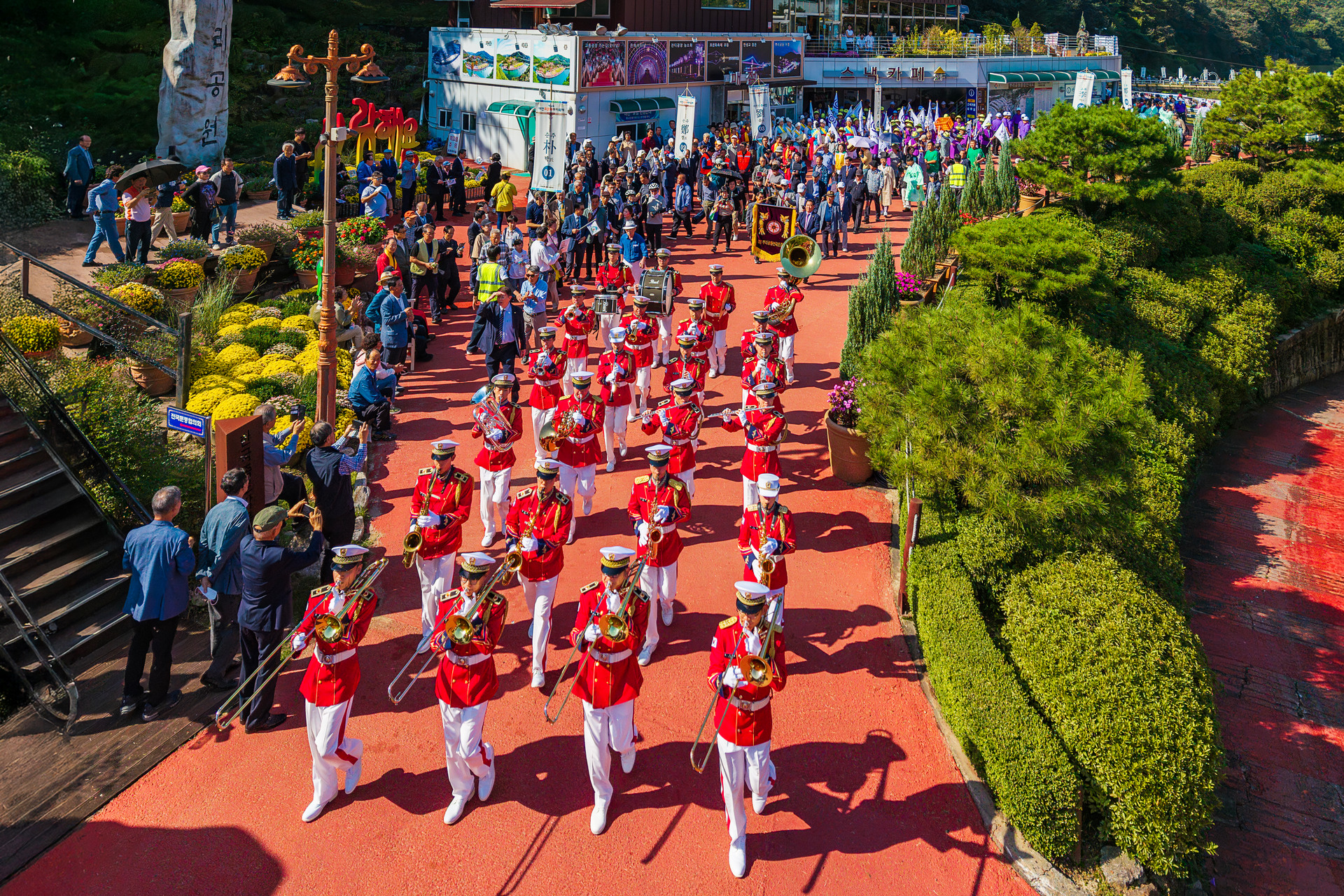 군악대를 선두로 문중 퍼레이드가 시작됨
