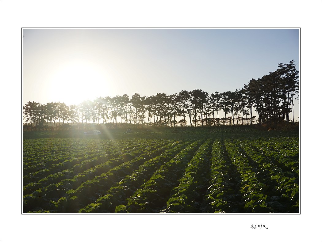 배추밭에 일몰이 지는 광경입니다...