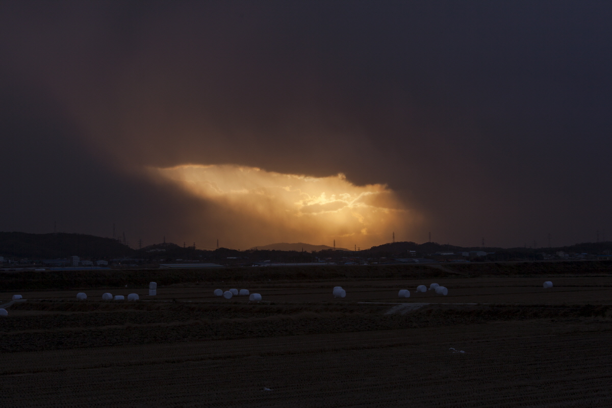시커먼 하늘에 커다란 구멍이 생겼습니다. 그 커다란 구멍사이로 하늘빛이 내려오네요